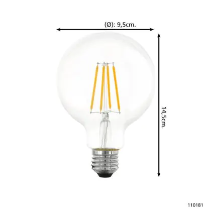 Eglo LED Globe E27 Filament Helder 7.3W 806lm - 827 Zeer Warm Wit | Dimbaar - Vervangt 60W