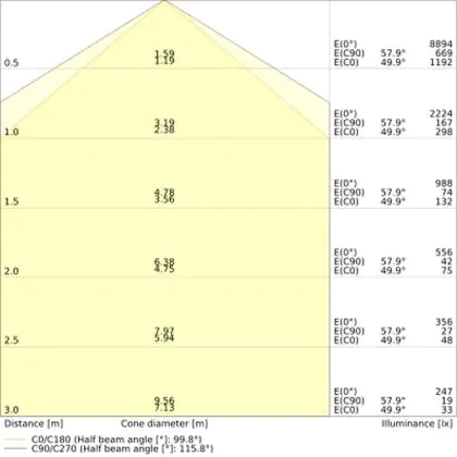![]() De kleurcode is een combinatie van de kleurweergave (CRI) en lichtkleur (Kelvin). Het eerste getal is de kleurweergave (1 = zeer slechte kleurweergave, 9 = maximale kleurechtheid). Het tweede en derde cijfer betreft de lichtkleur. Een lamp met kleurcode 830 heeft bijvoorbeeld een goede kleurweergave en straalt een warm wit licht uit (3000K), waar een lamp met de kleurcode 940 een uitstekende CRI heeft en een koel wit licht (4000K) uitstraalt. |