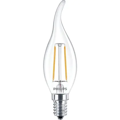 Philips Corepro LED Kaars E14 gebogen punt Filament Helder 2W 250lm - 827 Zeer Warm Wit | Vervangt 25W